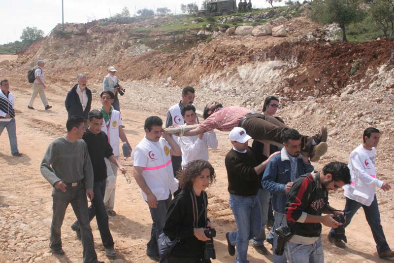 It was an honor for me to be with Palestinians, internationals and Israelis, Christians, Muslims and Jews all remembering this day in their own way, but sending one strong message to the world: As Christ was crucified 2000 years ago in Jerusalem, real peace between Palestinians and Israelis is being crucified today with the building of the Separation / Apartheid Wall and the confiscation of Palestinian land. The new thorns on our head are truly the wall being build around our communities and the new nails in our arms and feet are the military checkpoints and crossings that harm and humiliate us on a daily bases.