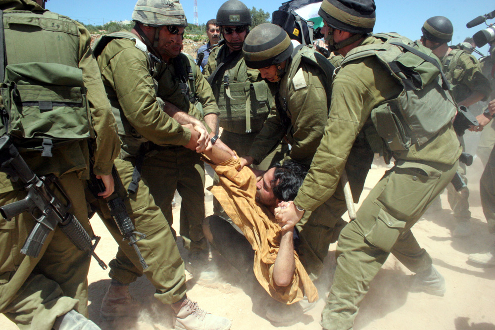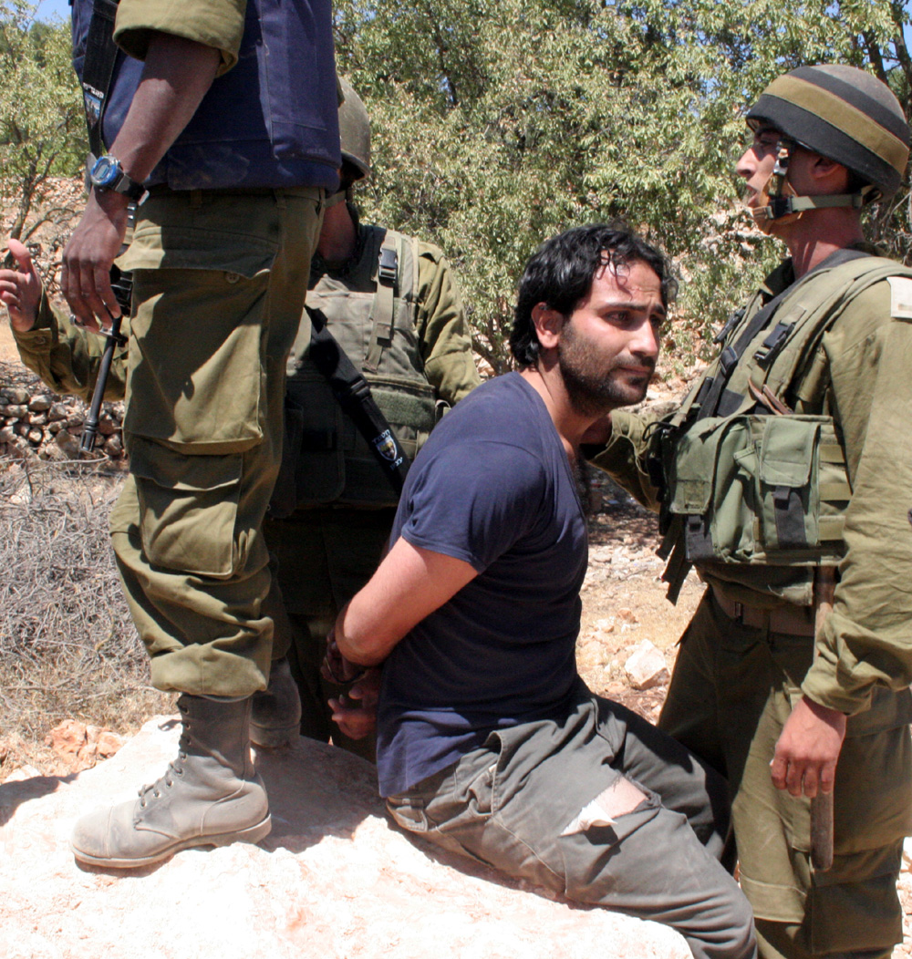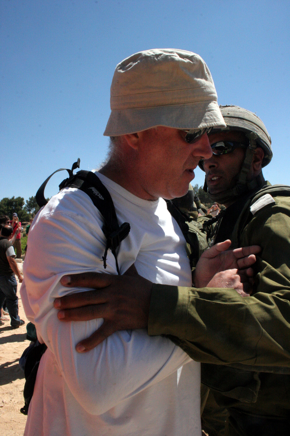 In one surprise attack the Israeli army burst into the demonstrators and arrested Muhammad Brejieh, one of the leaders of the Popular Committee to Resist the Wall in South Bethlehem, a dedicated nonviolent activist and a good friend. He was snatched forcefully as several of us tried to protect him. We were physically assaulted as we tried to hold on to Muhammad. I was kicked by several Israeli soldiers in the end of this raid to force me to let go of Muhammad’s leg; seeing this he asked me to let go.